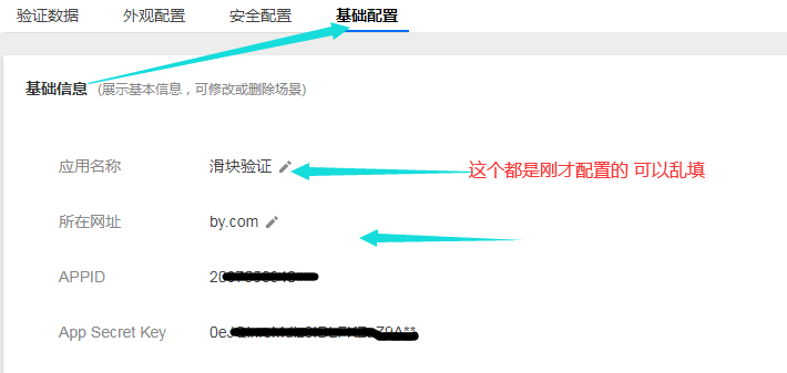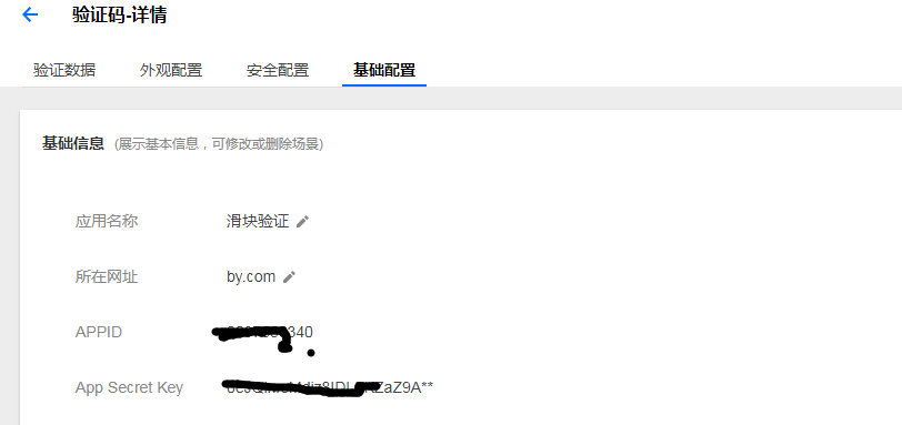 创建好了就可以看见点开基础配置我们自己的id跟密钥了