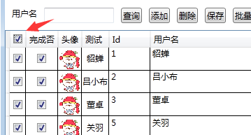 使用DataGridCheckBoxColumn只需要获取到第1列的内容就可以直接转化成chekbox了,然后操作就行了