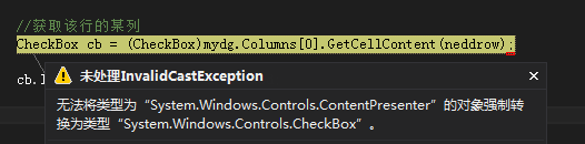 因为不是直接用的DataGridCheckBoxColumn,获取到的不是直接的checkbox