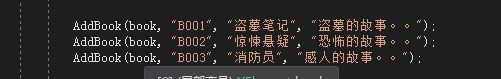 上图中代码作用为:调用第一张图中的AddBook方法,具体方法只是在操作(1)、(2)的内容。
