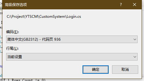 解决方法: 选“文件”菜单,“高级保存选项”菜单项,在“高级保存选项”对话框中, 将“编码”从“Unicode (UTF-8 无签名) - 代码页 65001”改为“简体中文(GB2312) - 代码页 936”或“Unicode (UTF-8 带签名) - 代码页 65001”。