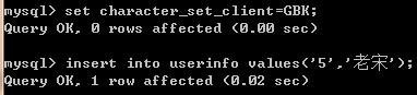 根据上面两张图,表,跟该数据库都支持utf8,然而cmd窗口默认为GBK,所以需要设置客户端使用的字符集,cahracter_set_client=GBK;