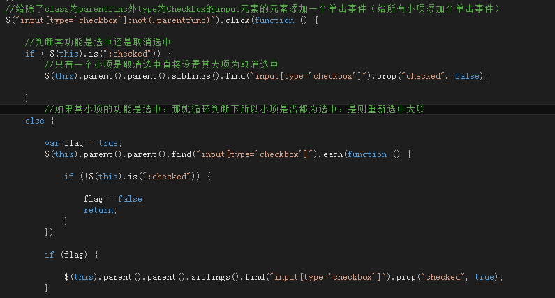 因为这里大项也是复选框,我就用$("input[type='checkbox']:not(.parentfunc)")代替$("input[type='checkbox']"),以提高效率