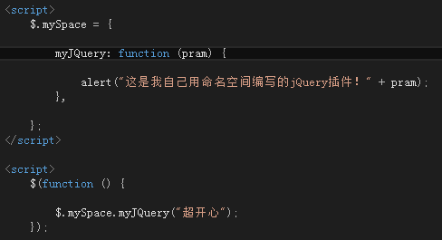 虽然在jQuery命名空间中,我们禁止使用了大量的javaScript函数名和变量名。但是仍然不可避免某些函数或变量名将和其他jQuery插件冲突,因此我们可以将一些方法封装到另一个自定义的命名空间,防止冲突。