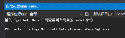 输入命令: Install-Package Microsoft.EntityFrameworkCore.SqlServer